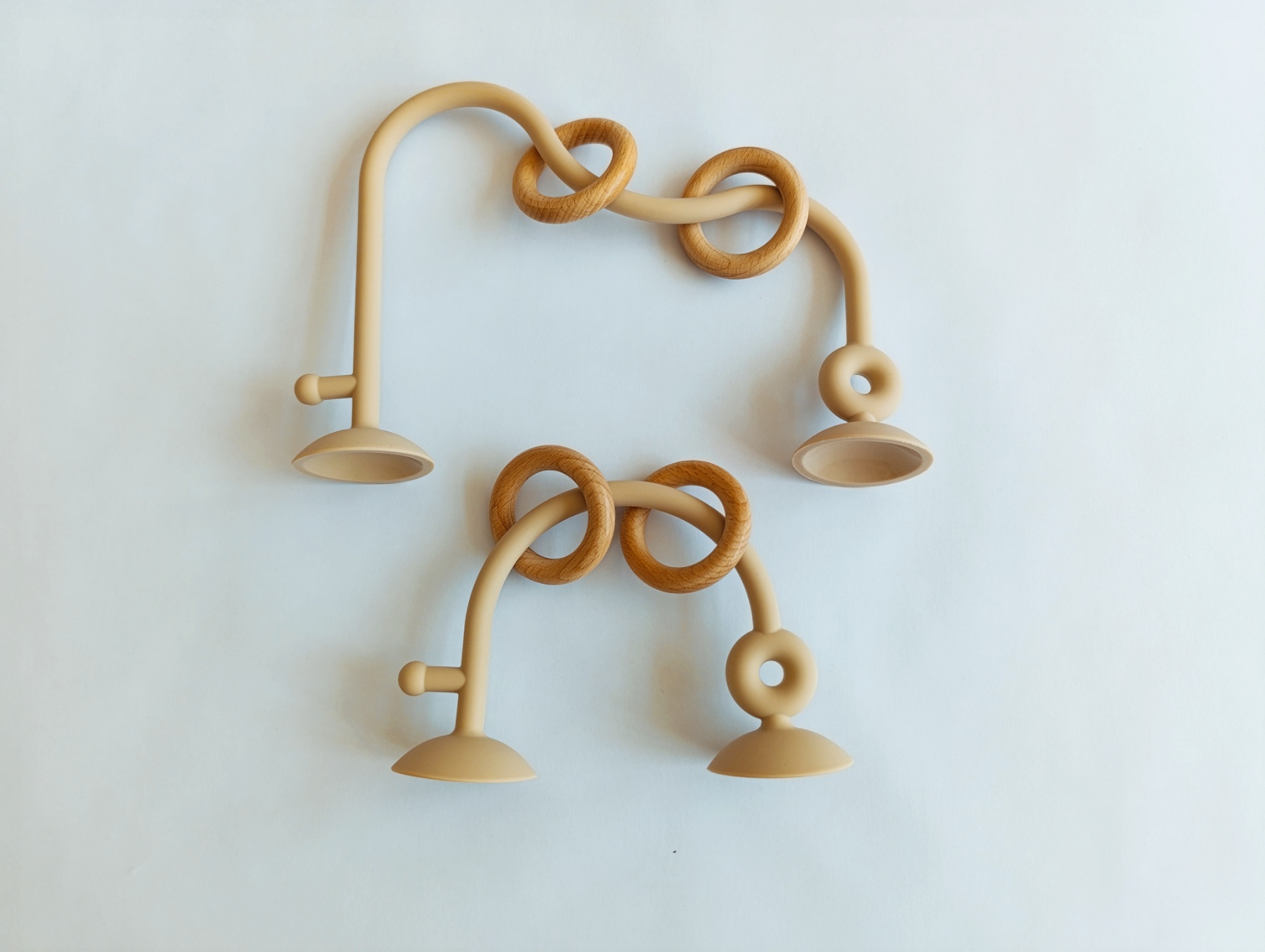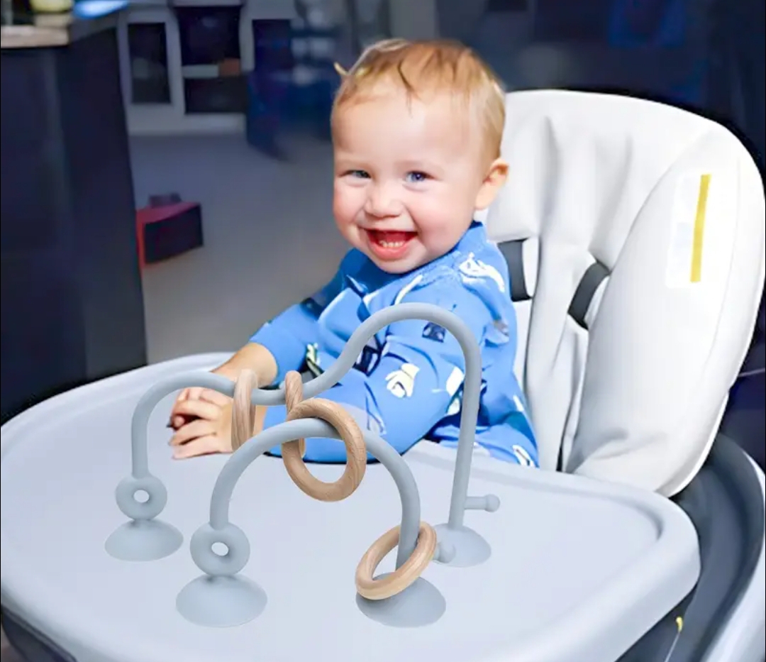 Savršen komplet za rani razvoj i učenje beba. Set uključuje igračke sa silikonskim vakumskim stalcima, drvene senzorne krugove za nizanje koje podstiču finu motoriku, maštu i kreativnost. Igračke su osmišljene za zabavu na stolovima i sjedalima, a zahvaljujući sigurnom i mekano oblikovanom silikonu te prirodnom drvetu, potpuno su prikladne i za najmanje ruke.